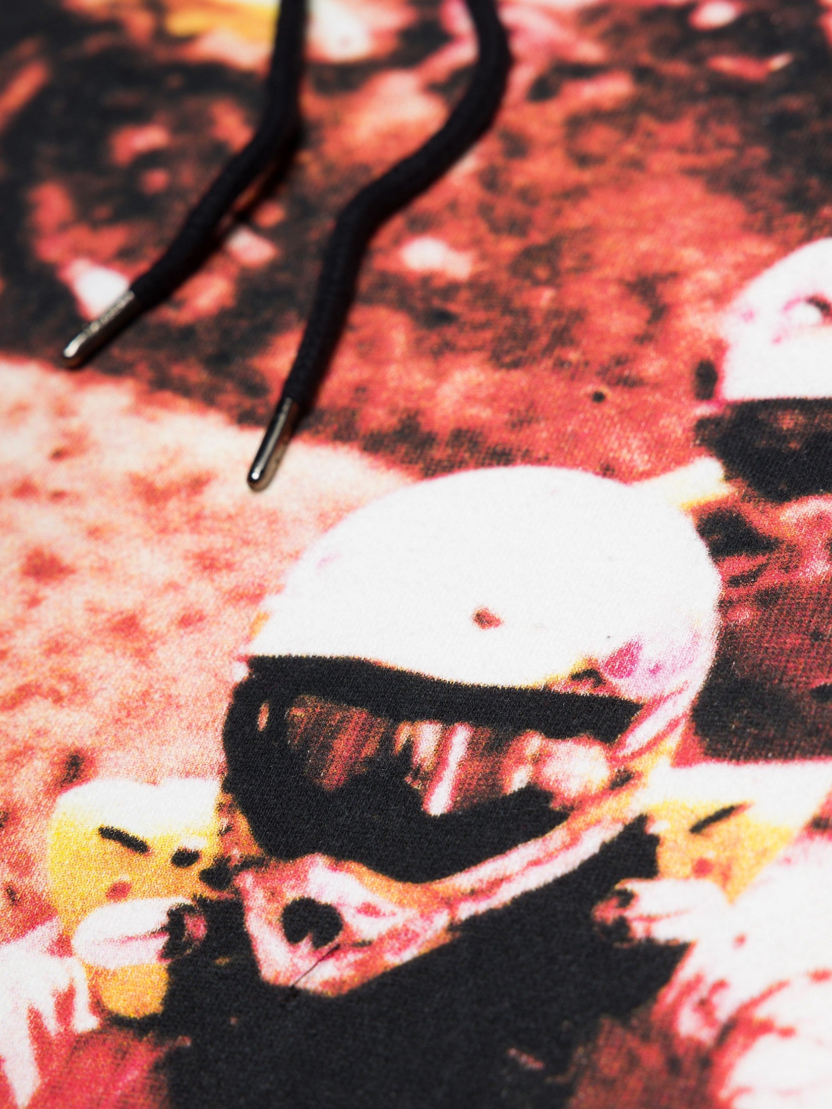 - Design: Full graphic print, kangaroo pocket, ribbed cuffs