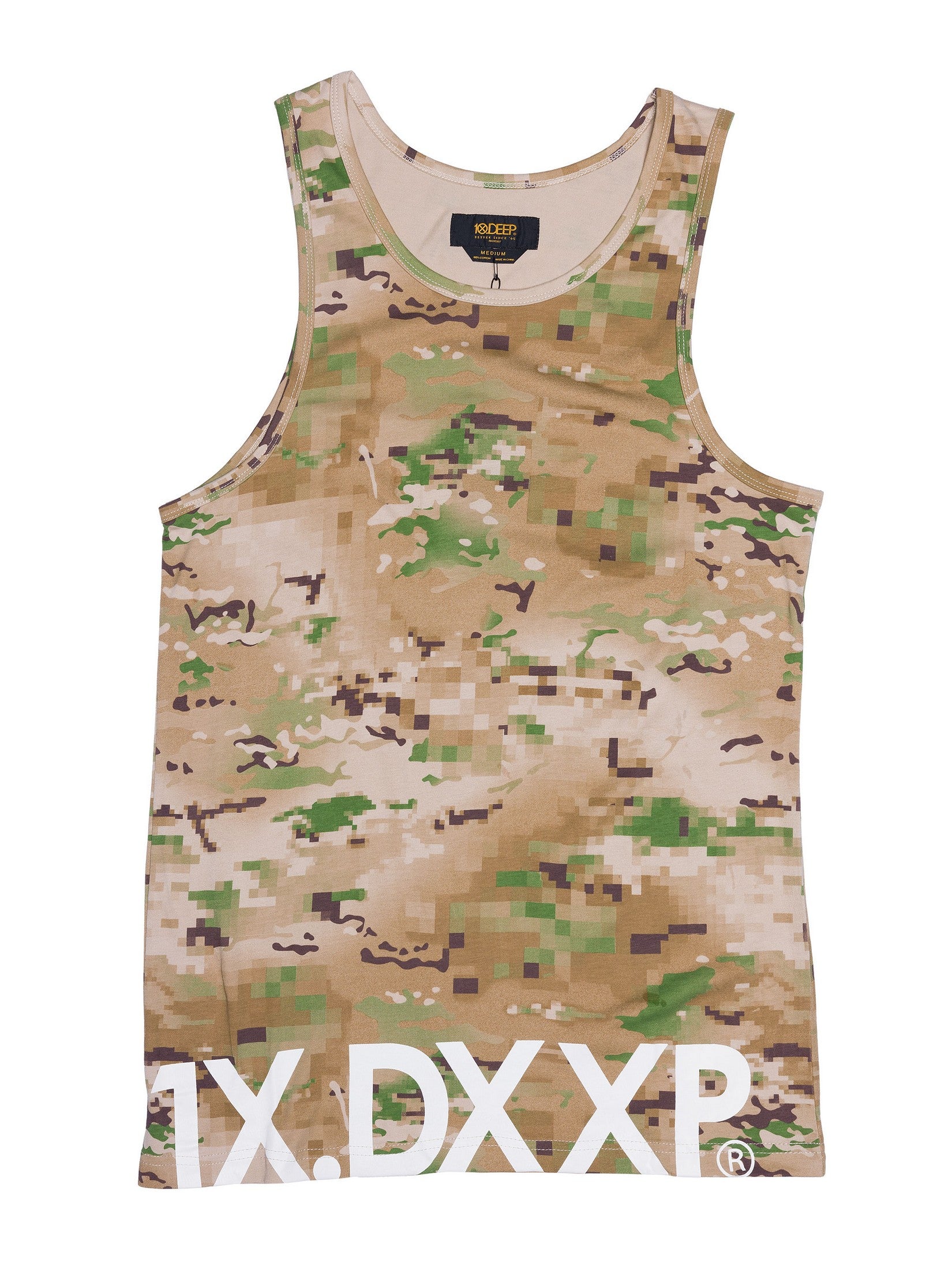 Blend in while standing out. The Lower Third Tank Top flips the classic camo on its head with a pixelated desert camo print that’s more street than stealth. Finished with bold white “1X.DXXP” branding along the hem, this piece brings military vibes into the urban arena with unmistakable 10.Deep flavor.