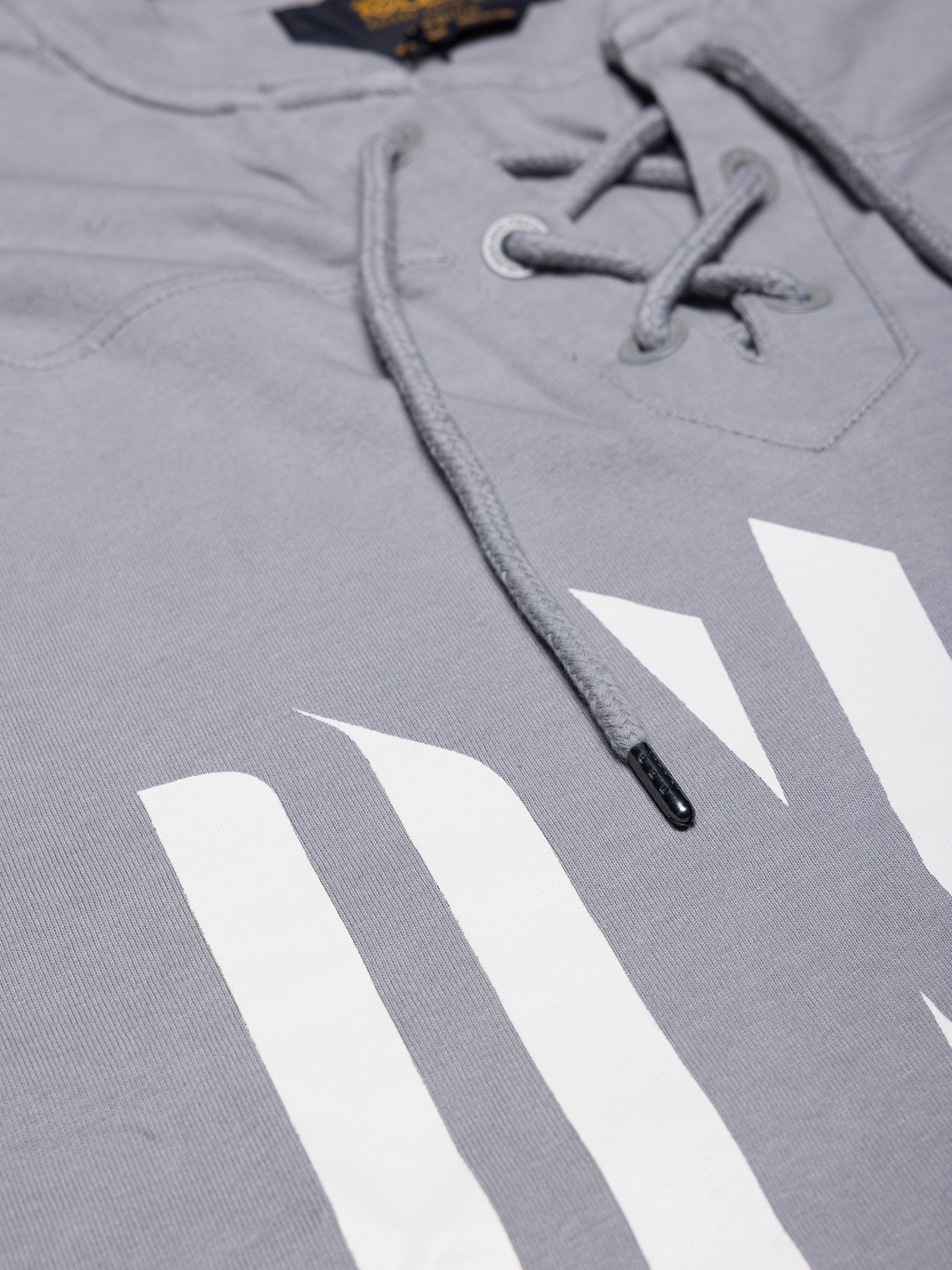 - Fit: Relaxed, hockey-inspired silhouette with lace-up neckline