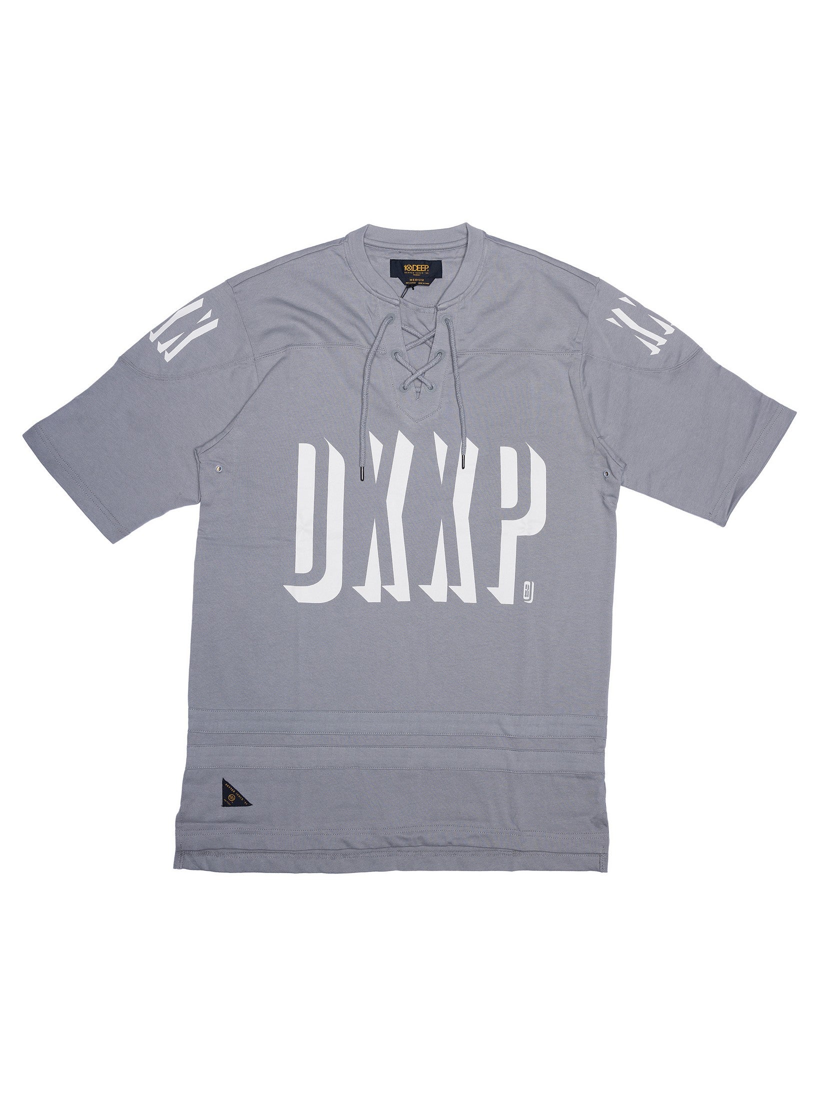- Design: DXXP logo on chest, 10 on back, sleeve branding, lace-up front