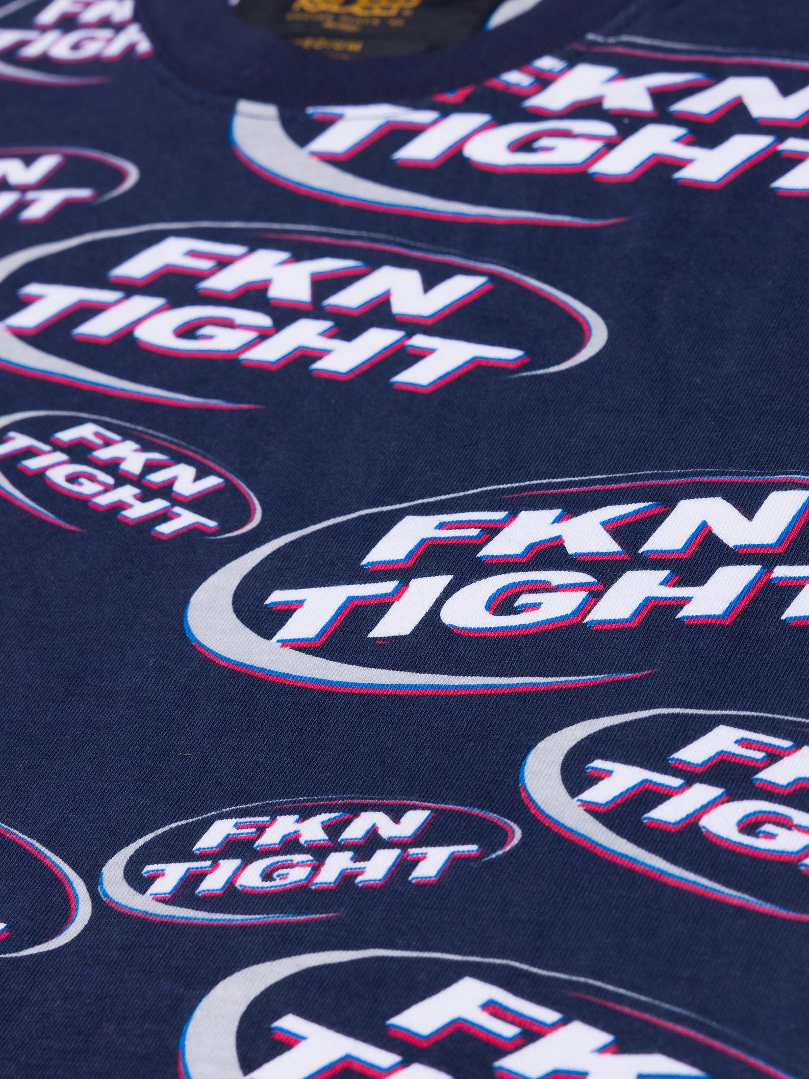 - Color: Navy with all-over “FKN TIGHT” print in white, red, and blue