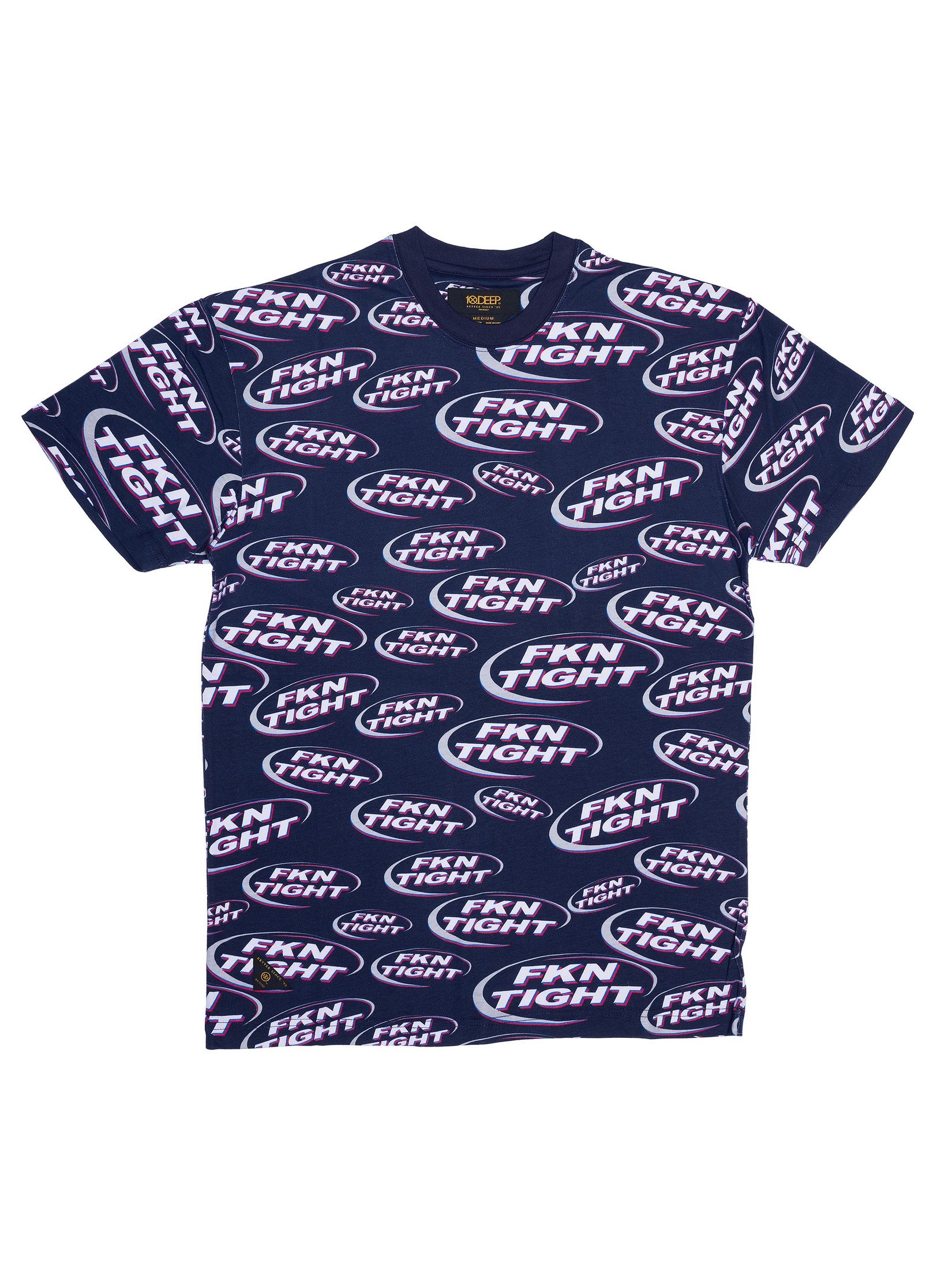 Start your engines. The Pit Crew Tee is loud, unapologetic, and built for speed with its all-over “FKN TIGHT” graphic hit—racing-inspired and ready to burn rubber. In a bold navy colorway with red, white, and blue accents, this tee is made to turn heads whether you’re trackside or street cruising.