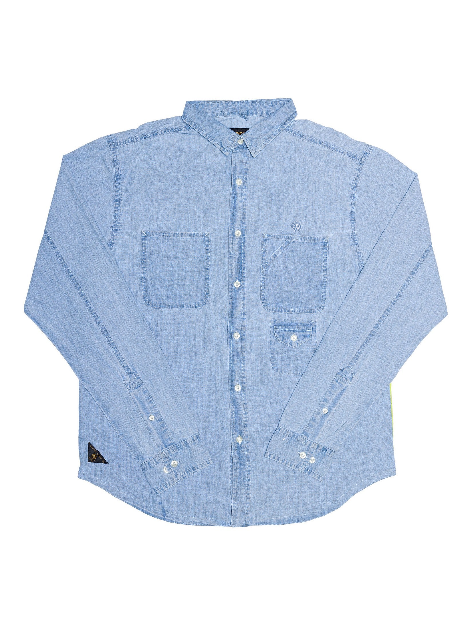 Workwear meets street flair. The Redtail Work shirt from 10.Deep flips a classic chambray button-up with a bold pop of neon at the hem, bringing unexpected energy to a timeless staple. With multiple chest pockets and subtle embroidered details, this shirt is built for both utility and style. Wear it open over a tee or buttoned up for a sharper look — either way, you’re making a statement.