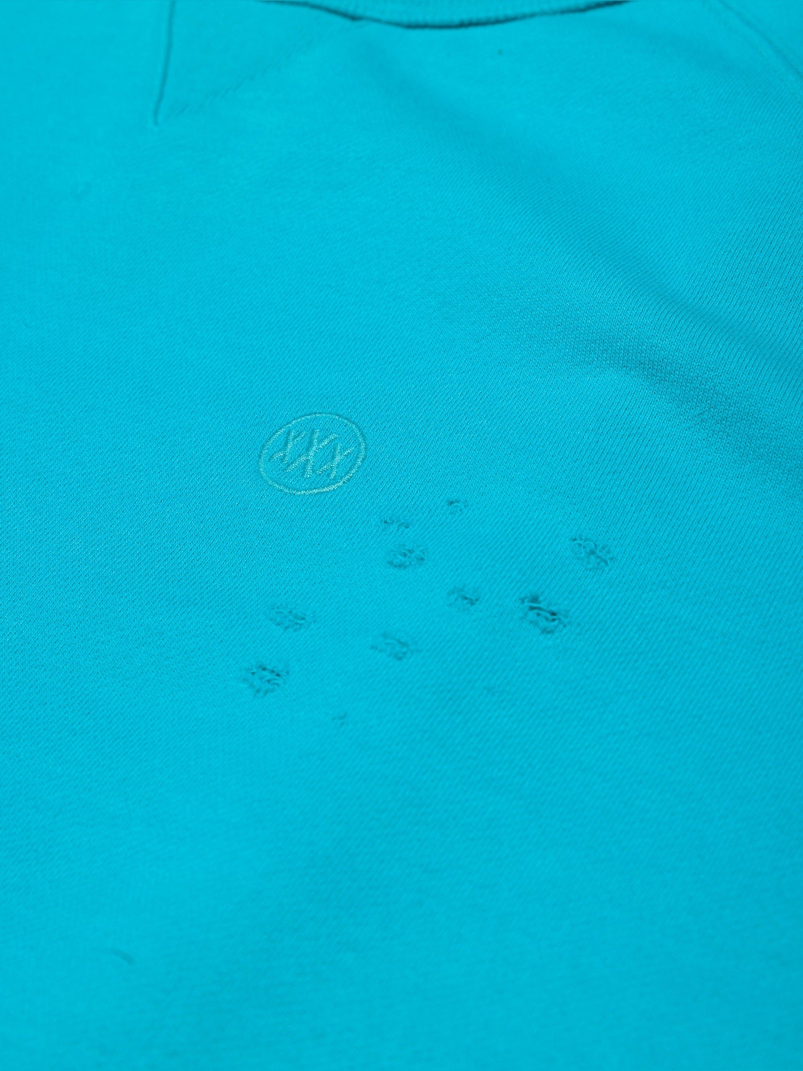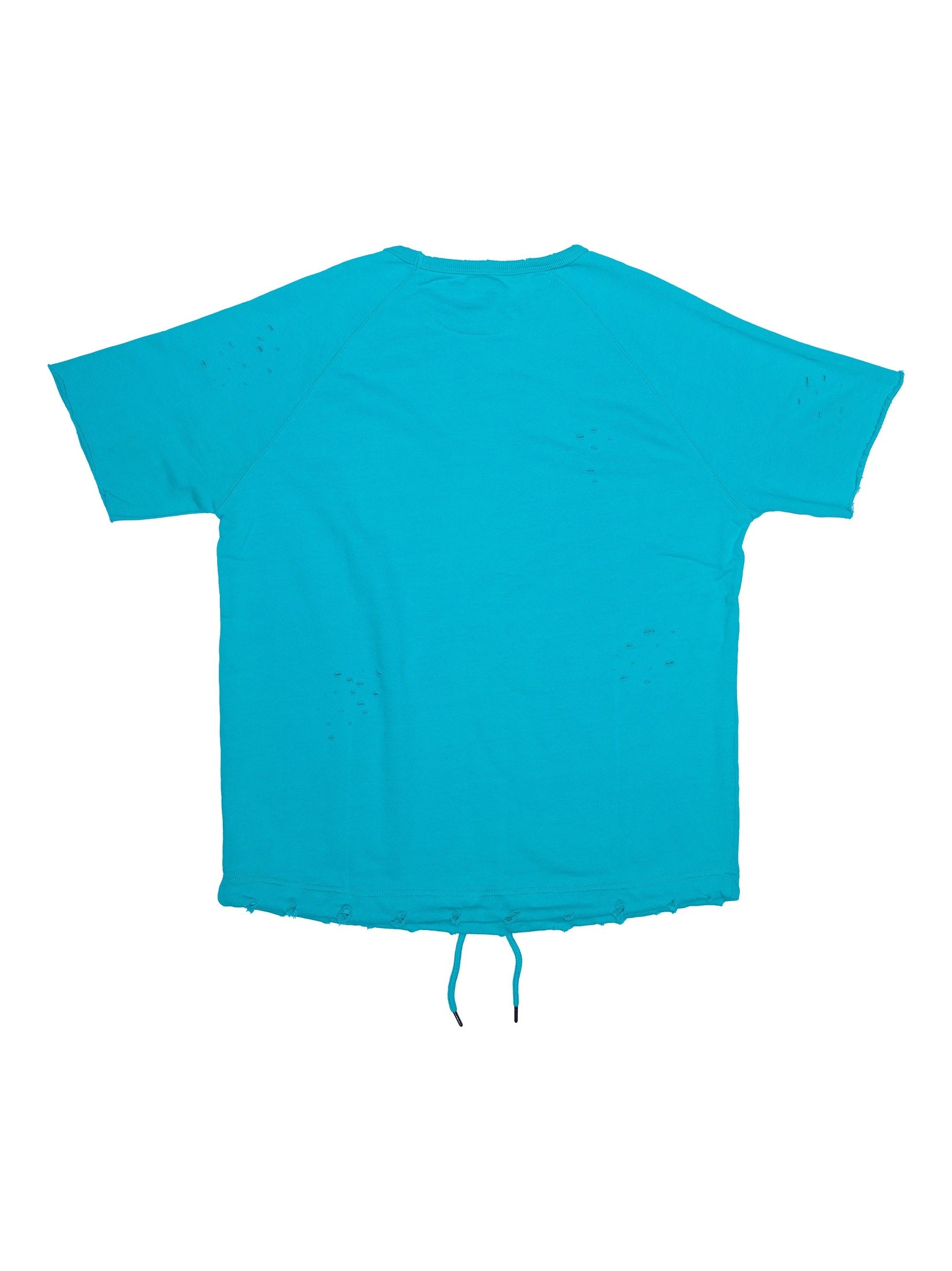 - Design: Crewneck with all-over slight distressing