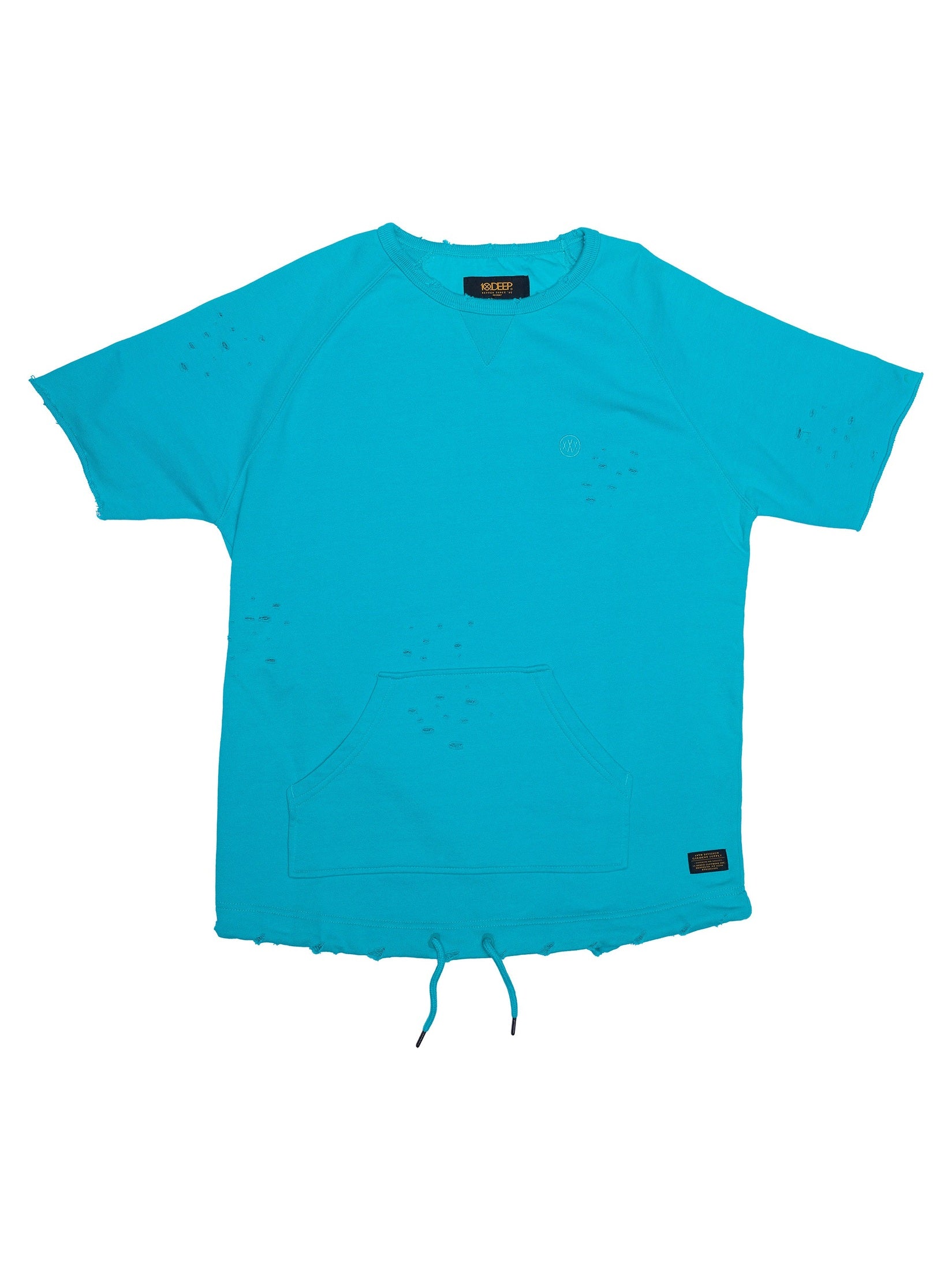 The Spicoli Crew is a relaxed, vintage-inspired pullover that channels laid-back California vibes with a modern streetwear edge. Crafted from 100% cotton, it features subtle all-over distressing for a worn-in look, complemented by raglan short sleeves and a kangaroo pocket. A drawstring hem adds a functional detail, allowing for adjustable styling.