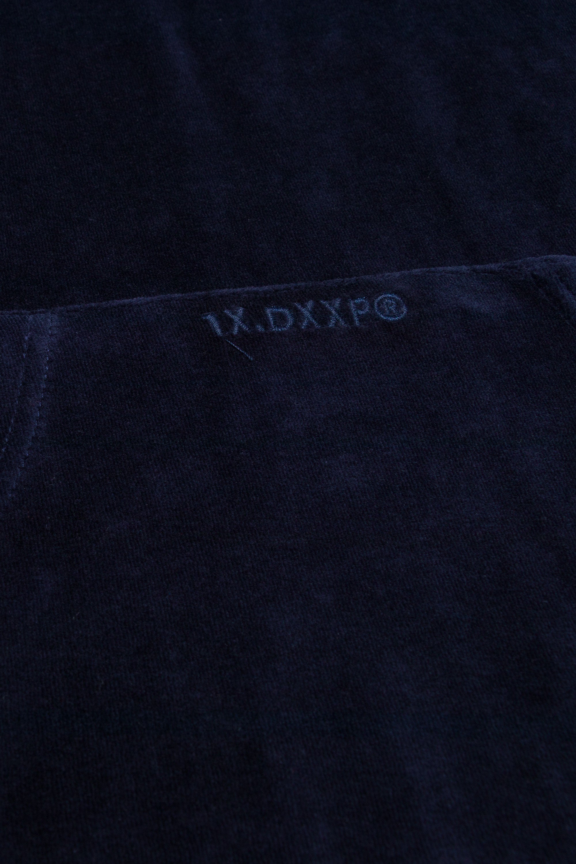 Lush meets laid-back in this luxe velour hoodie, built to shine when the light hits right. The Velour Open Bottom Hoody brings vintage sportswear energy with a heavyweight velour body, tonal embroidered 1X.DXXP® logo at the pouch, and cinchable hem for shape control. Kangaroo pocket up front, circle patch hit on the back. Plush and polished, all at once.