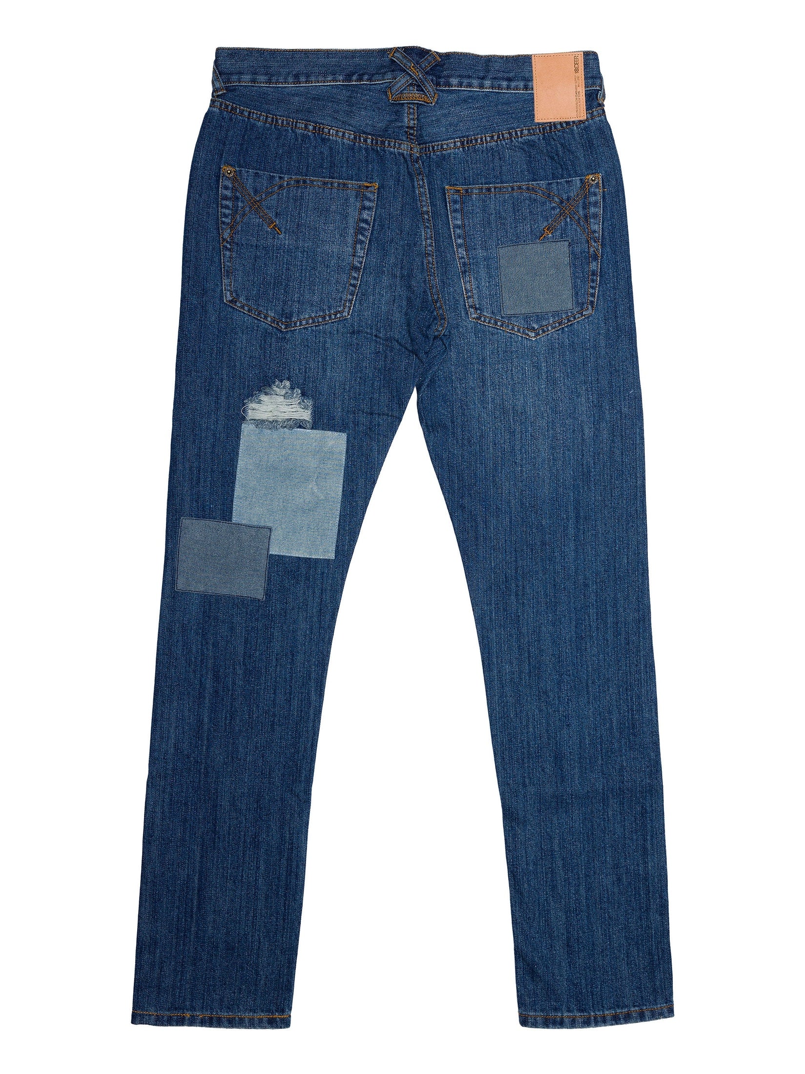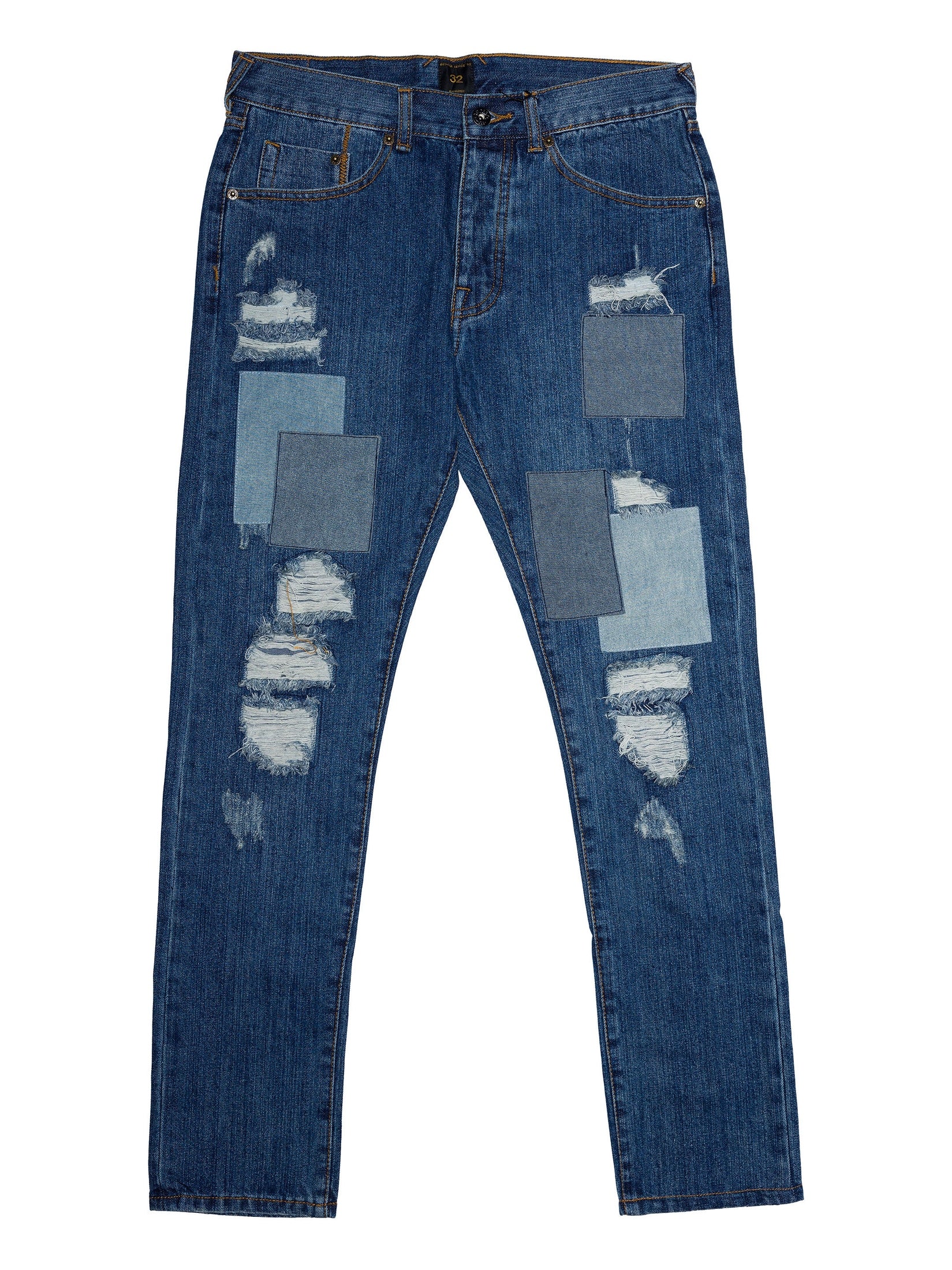 Crafted from durable cotton denim, these jeans feature a classic 5-pocket construction and a slim straight-leg fit, offering both comfort and versatility. The medium stone wash finish with tonal patches provides a vintage-inspired aesthetic, making them a perfect staple for any streetwear enthusiast.