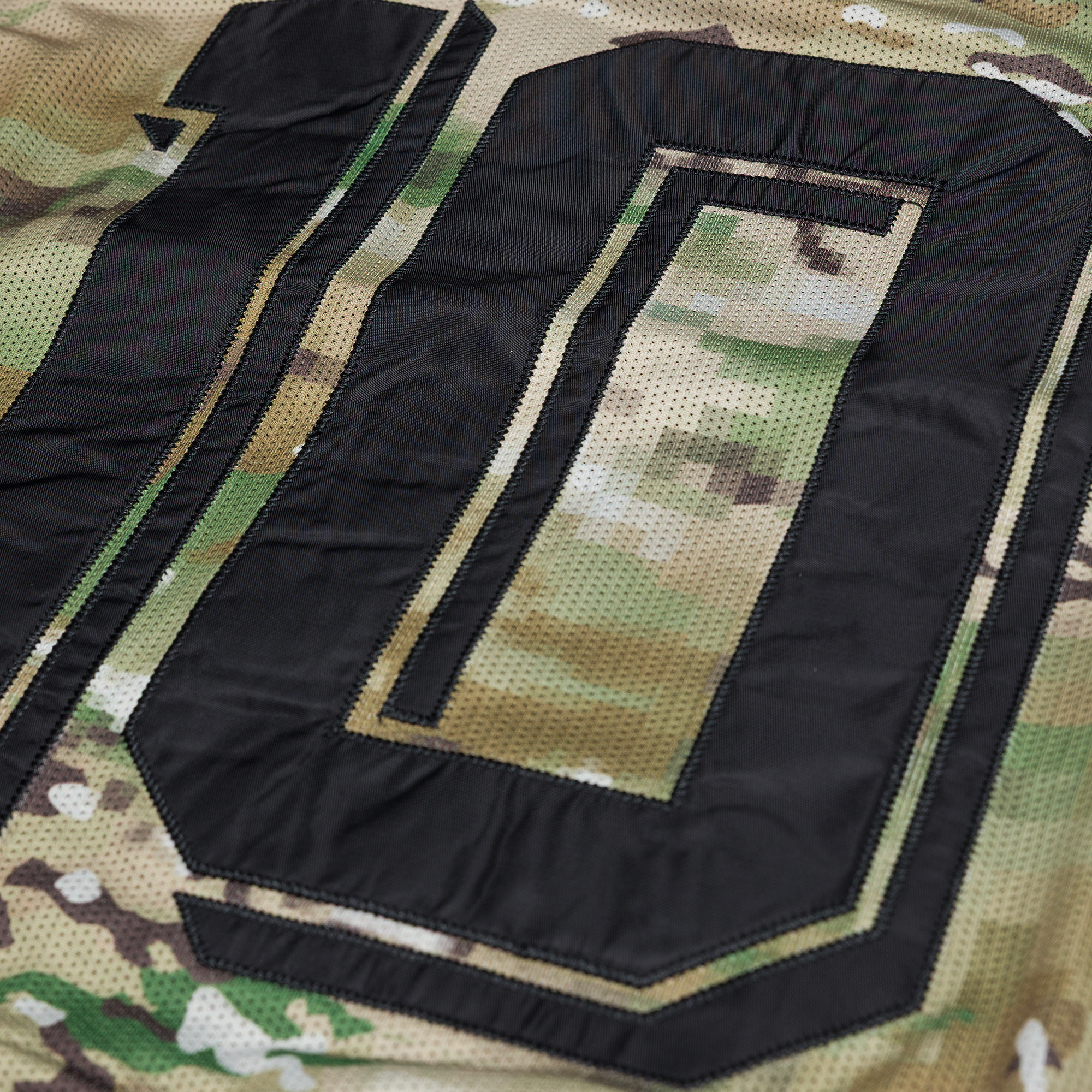 A battlefield remix of the classic rink-ready look. The Bazik Hockey Jersey gets the camo treatment, combining tactical vibes with streetwear flex. Oversized appliqué “10” front and back, “USA” on the rear yoke, and black-on-black sleeve patch hits round out the militant aesthetic.