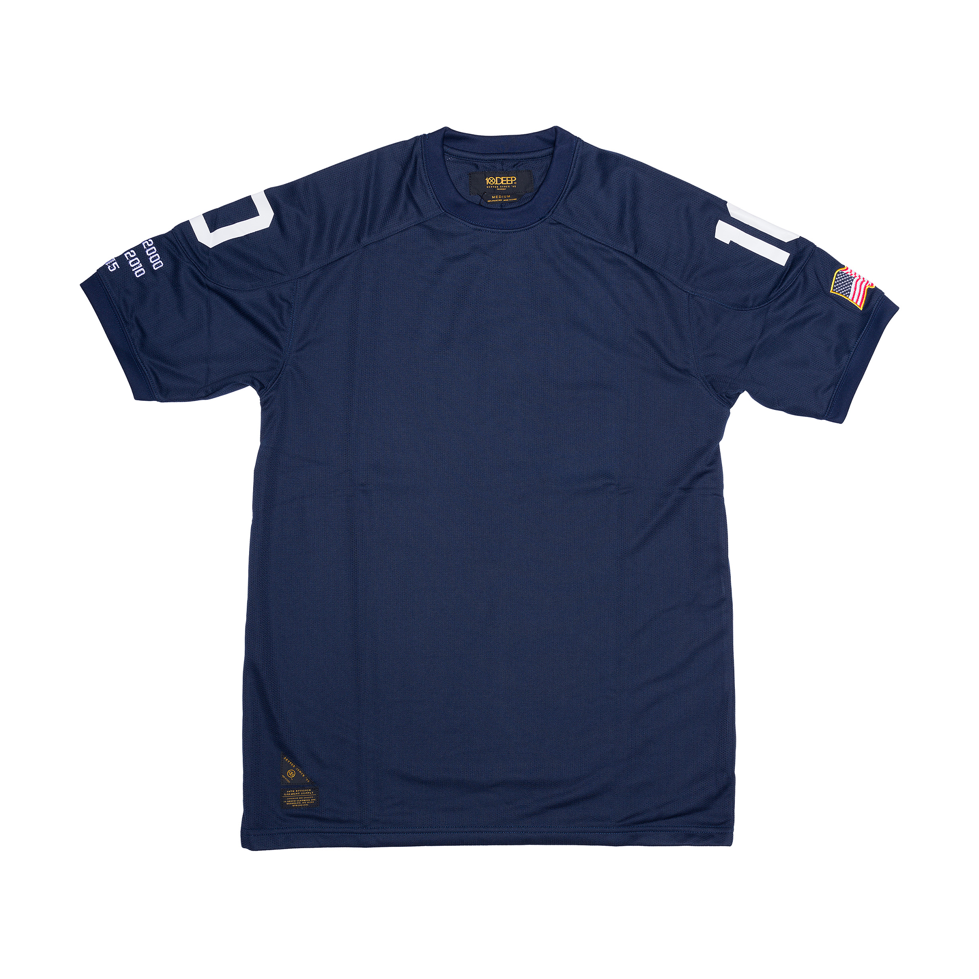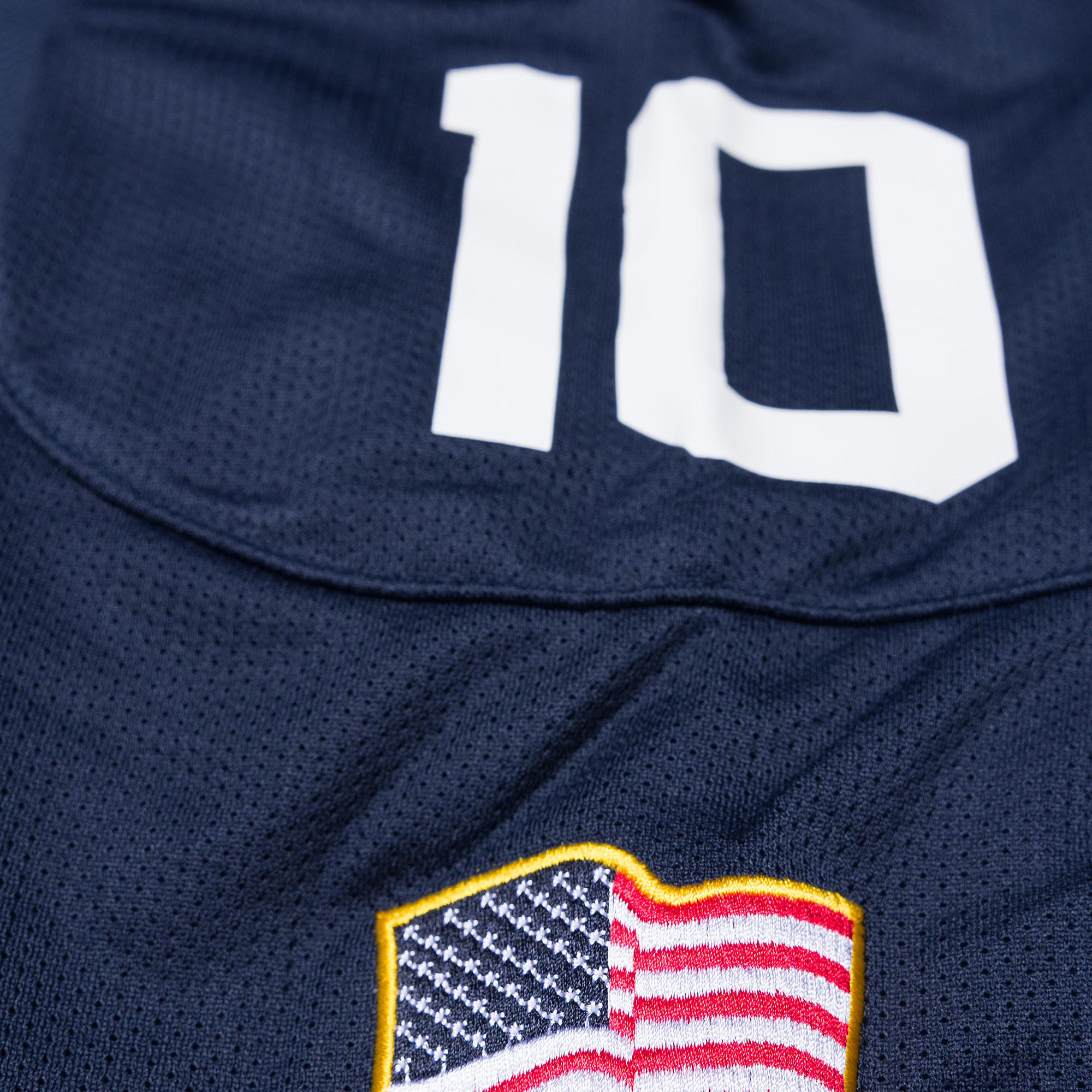 Rep the squad, own the streets. The National Team Jersey by 10.Deep is a tribute to classic sports heritage with a rebellious twist. Rocking a deep navy mesh build, oversized “10” prints, and a stitched American flag patch, this jersey brings all-star energy to your everyday lineup.