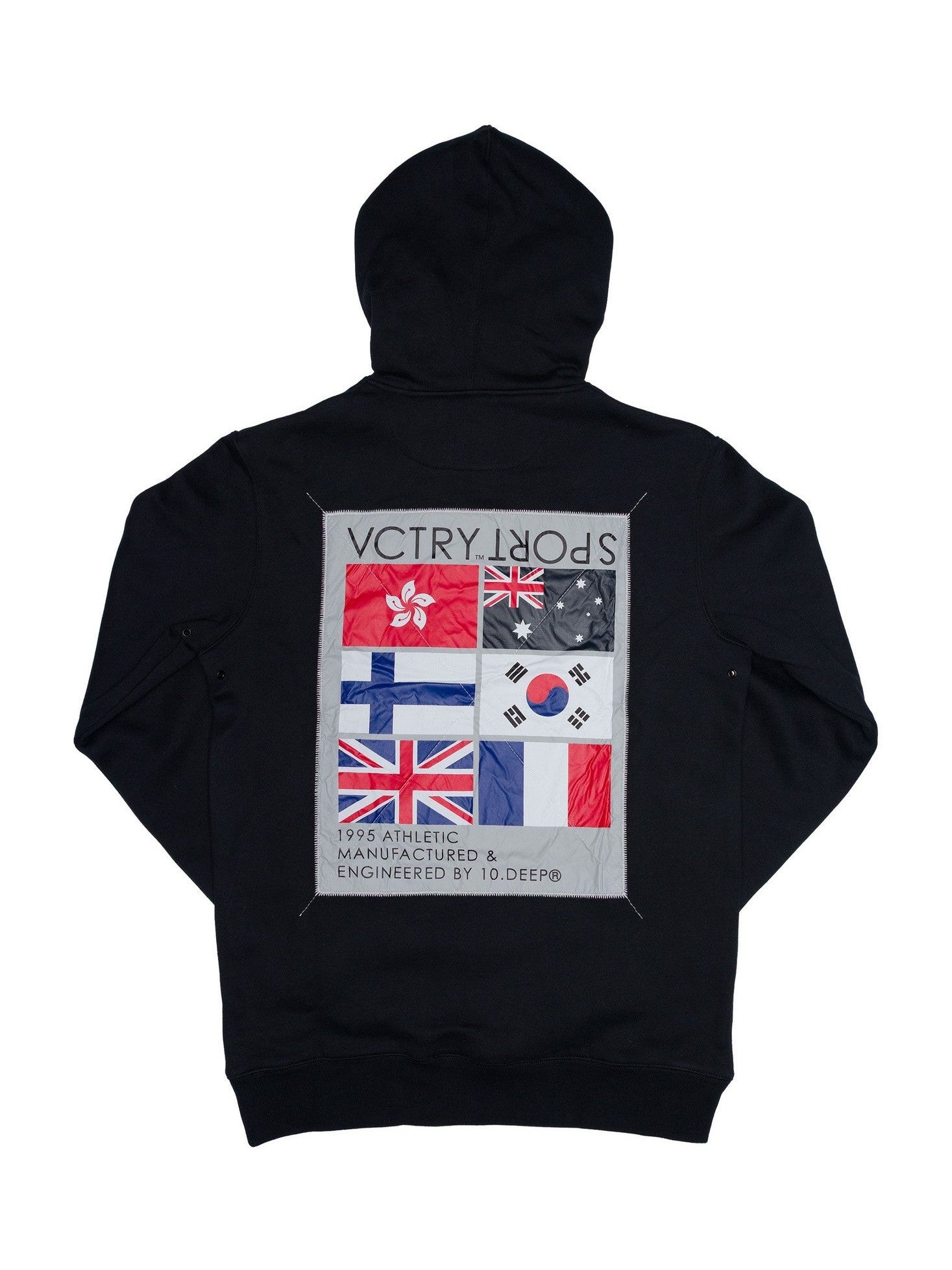 World tour energy without leaving your zip code. The Sport Game Hoody flips vintage athletics into a global mission statement—stitched with a patchwork flag graphic that reps 10.Deep’s international reach. Cut from heavyweight fleece and finished with a chest hit that keeps it official.