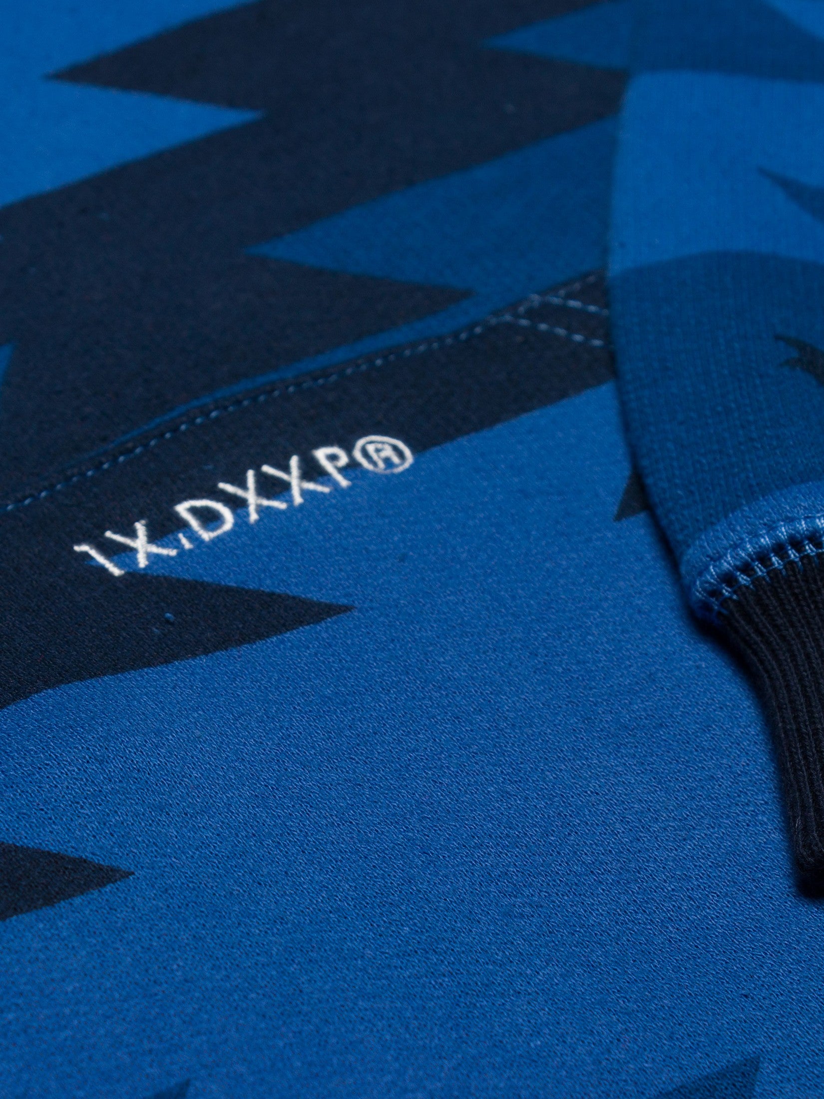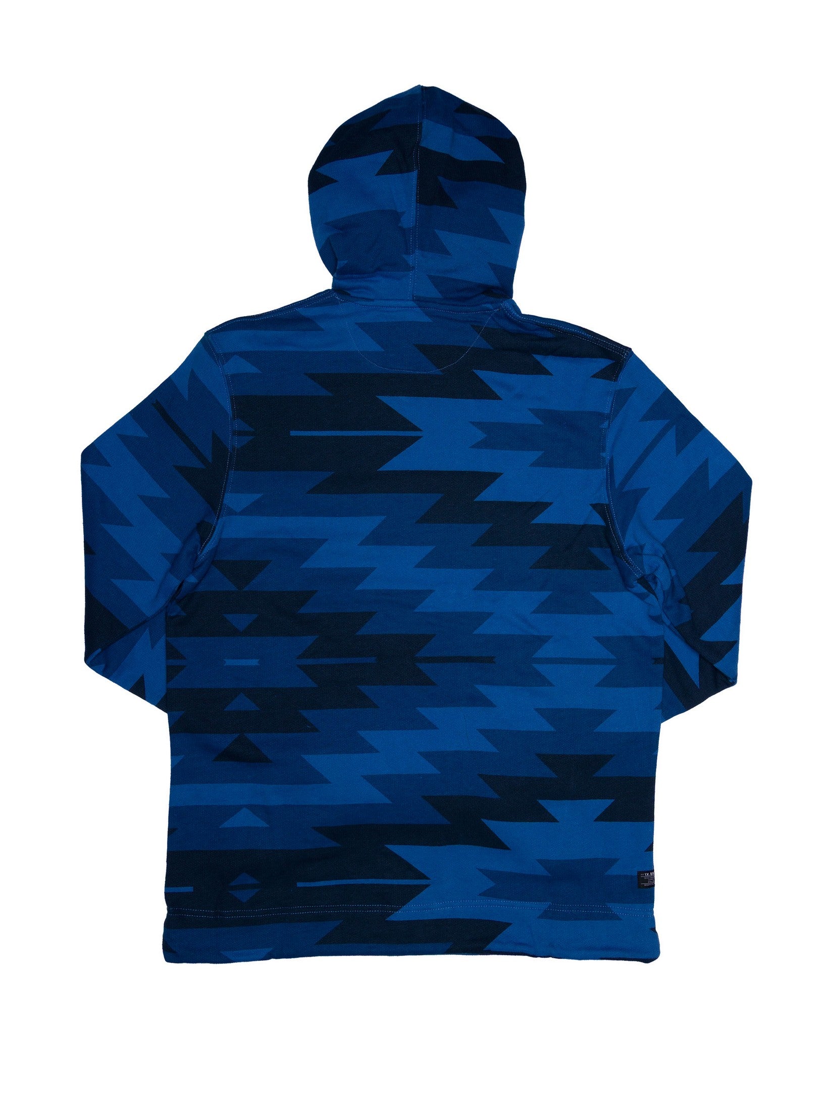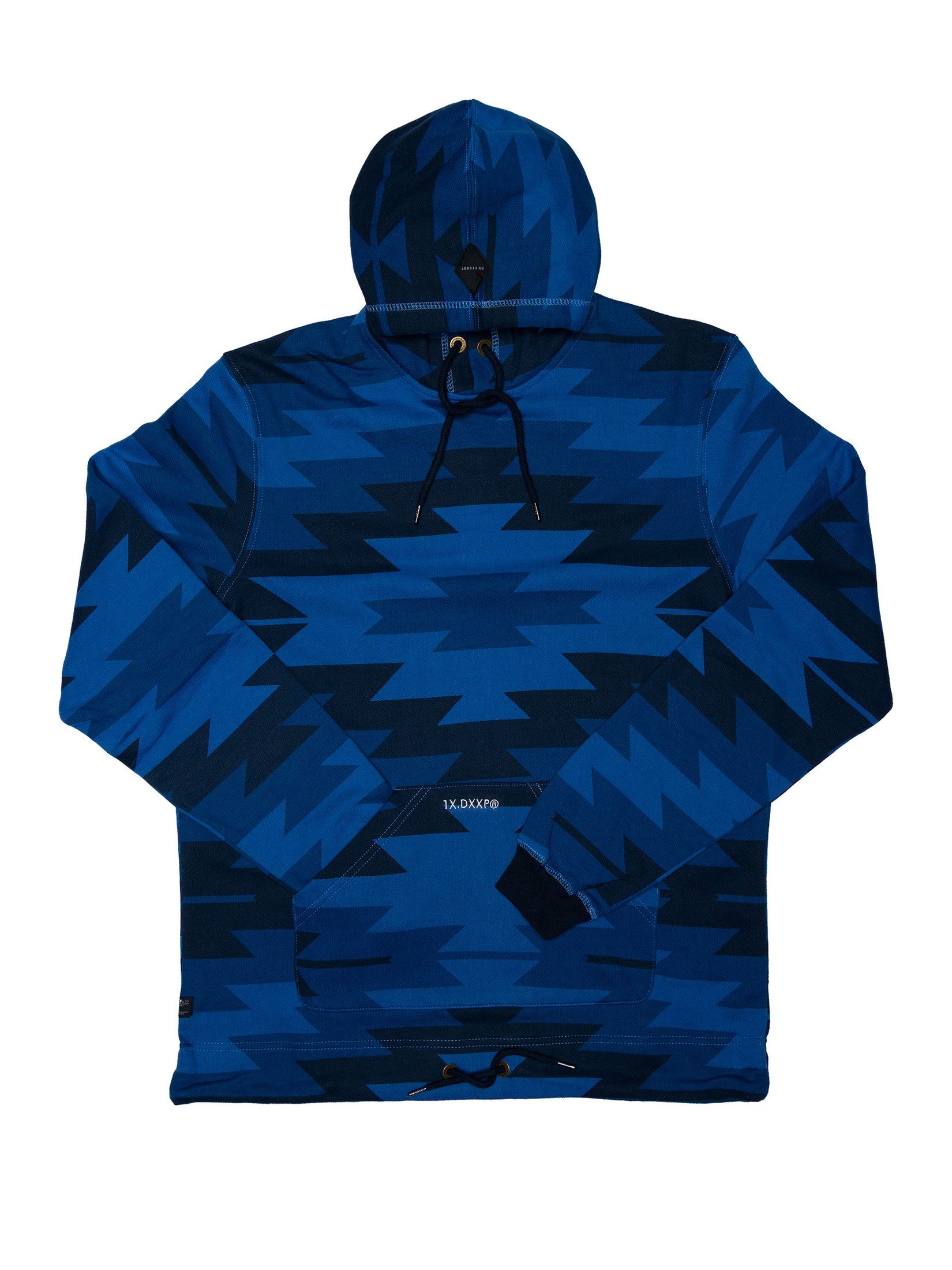 Ancient pattern. Modern motion. The Spirit Hoody flips classic Aztec motifs into something sharper—engineered for city movement. Wrapped in navy and black with precision-cut geometry, it’s got that archival energy filtered through street DNA. Clean IX.DXXP® print at the pocket. No ribbing at the hem—just an adjustable drawcord so you wear it how you want.