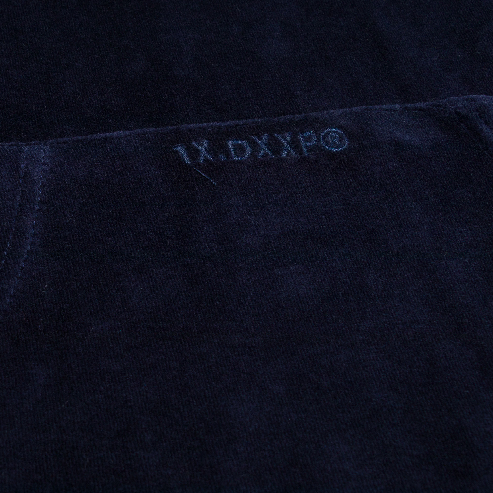 Lush meets laid-back in this luxe velour hoodie, built to shine when the light hits right. The Velour Open Bottom Hoody brings vintage sportswear energy with a heavyweight velour body, tonal embroidered 1X.DXXP® logo at the pouch, and cinchable hem for shape control. Kangaroo pocket up front, circle patch hit on the back. Plush and polished, all at once.