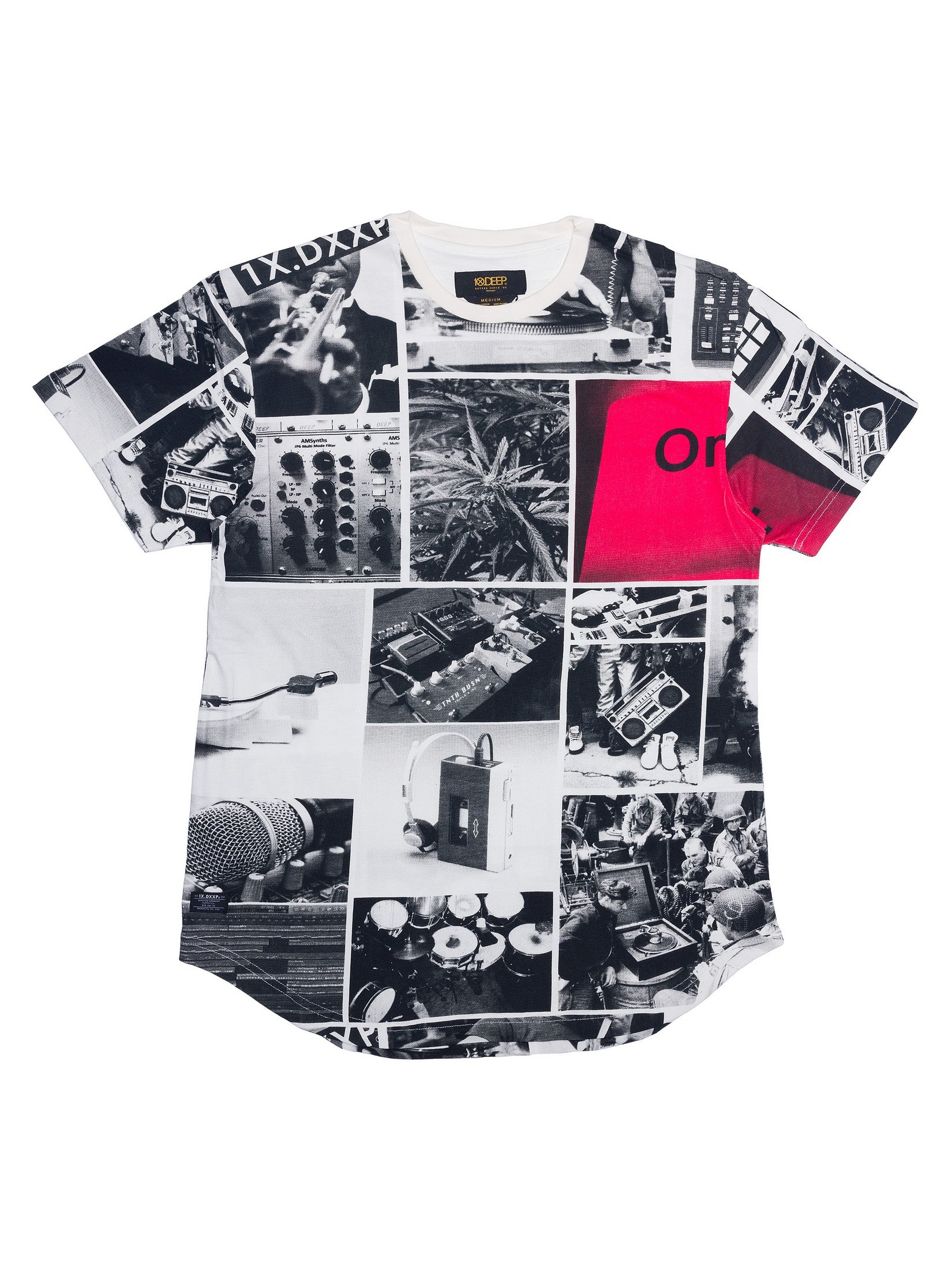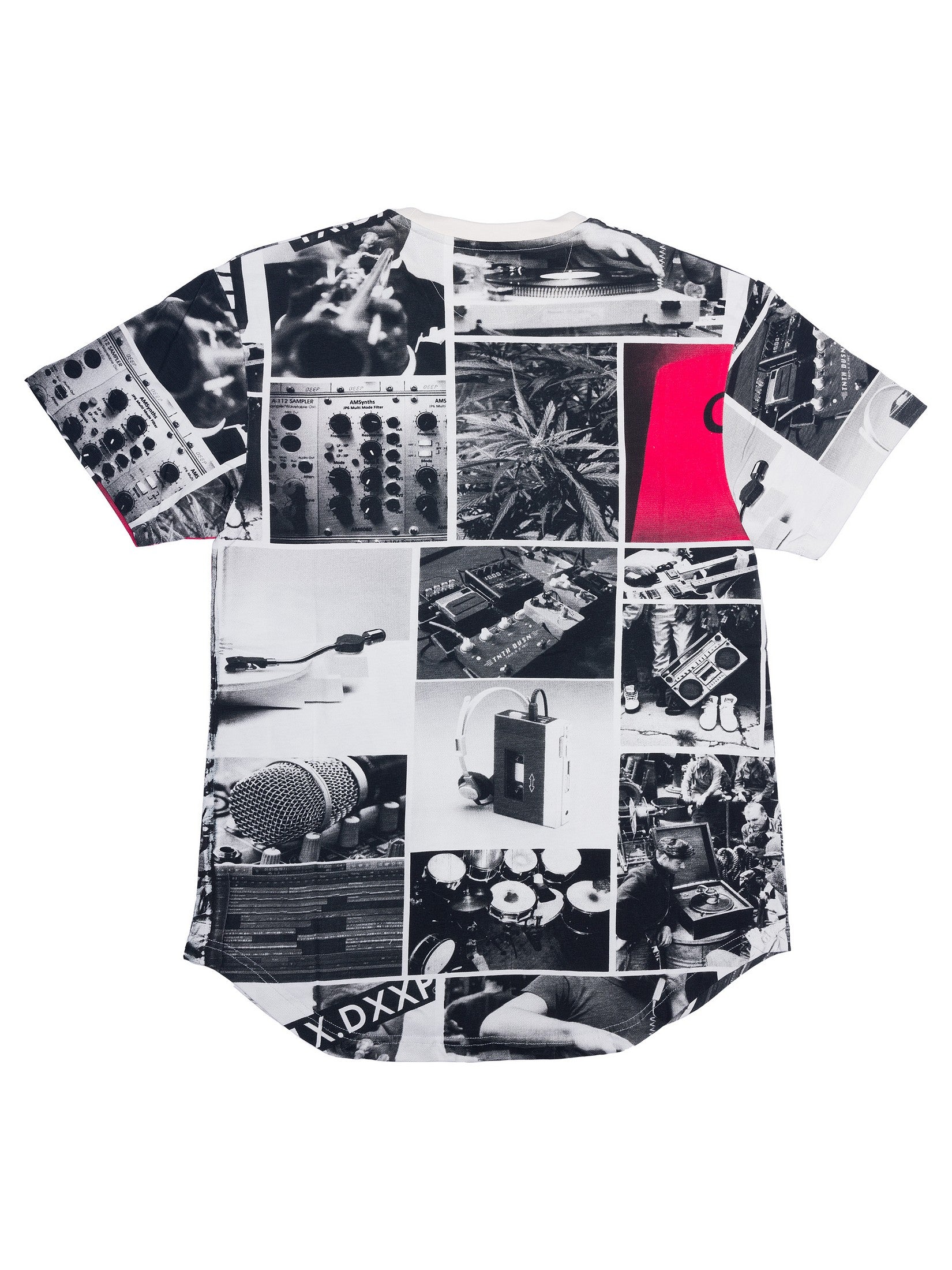 A visual mixtape printed loud across your chest. The XXX Sound Scoop Tee is a full-spectrum collage of analog sound and raw energy—from drum pads to vinyl stacks, Walkmans to mic checks. This all-over sublimation print hits like a DIY zine—chaotic, intentional, and steeped in underground noise.