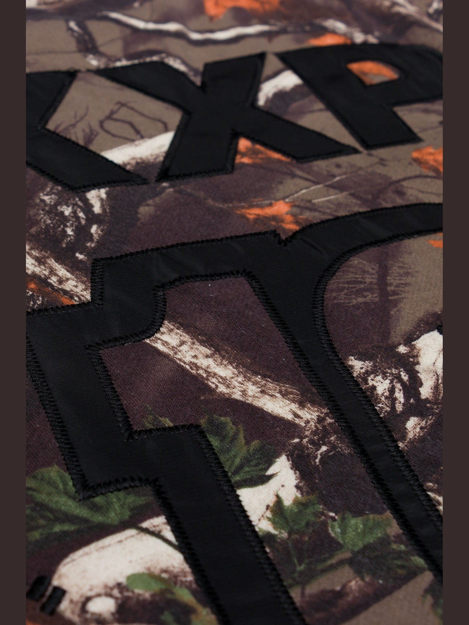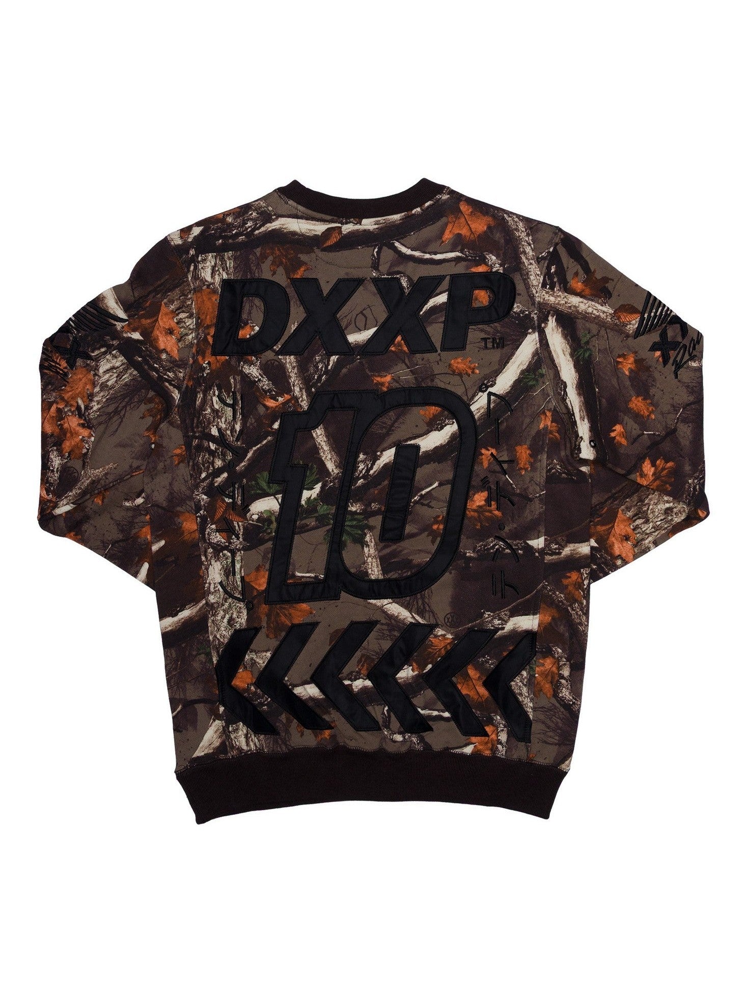 Lost in the woods, but still making noise. The Drifter Crew throws down full-print hunting camo with layered hits of DXXP branding, oversized appliqué numbers, and tactical-style graphics from sleeve to spine. Built like streetwear survival gear—this one's for the outliers, the lurkers, the ones who don’t come back the same way they left.