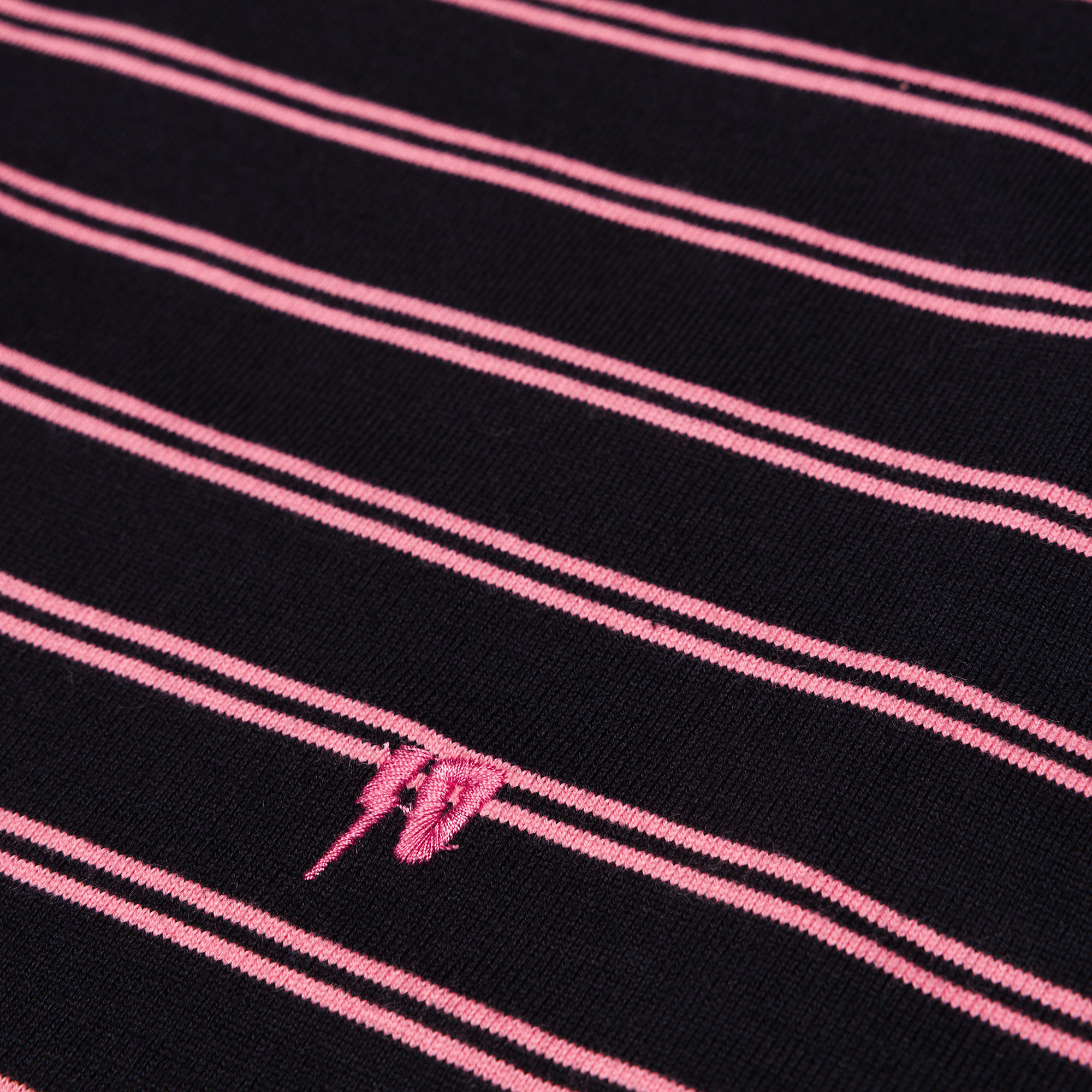 Laid-back lines with a sharp edge. The Foreigner Tee flips classic stripes with a jet-black base and pink micro-stripes, finished with a tonal pink “10” embroidery at the chest. Lightweight but loud in all the right ways.