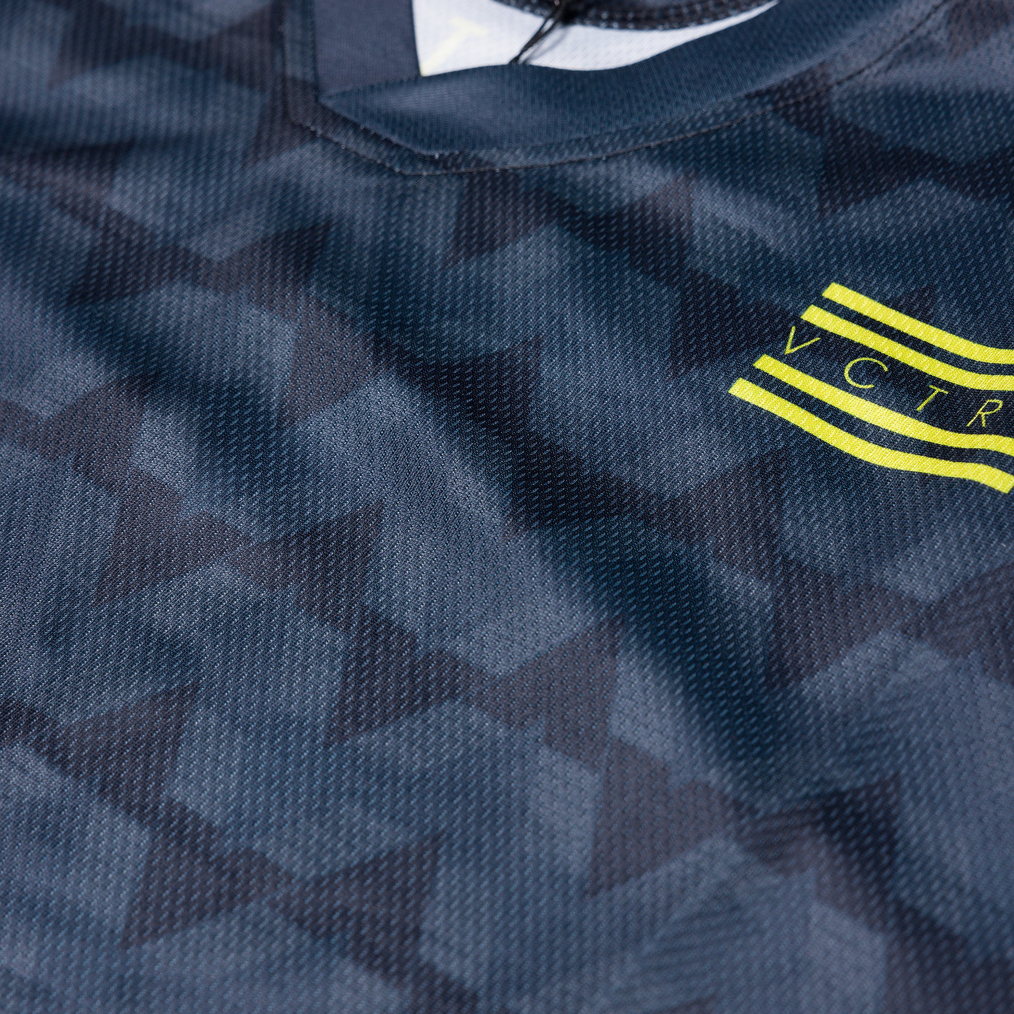 - Design: V-neck collar with bold graphics on front, back, and sleeves