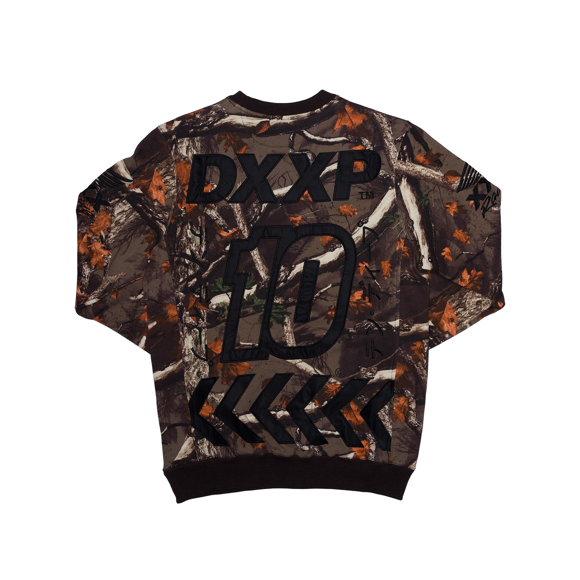 Lost in the woods, but still making noise. The Drifter Crew throws down full-print hunting camo with layered hits of DXXP branding, oversized appliqué numbers, and tactical-style graphics from sleeve to spine. Built like streetwear survival gear—this one's for the outliers, the lurkers, the ones who don’t come back the same way they left.
