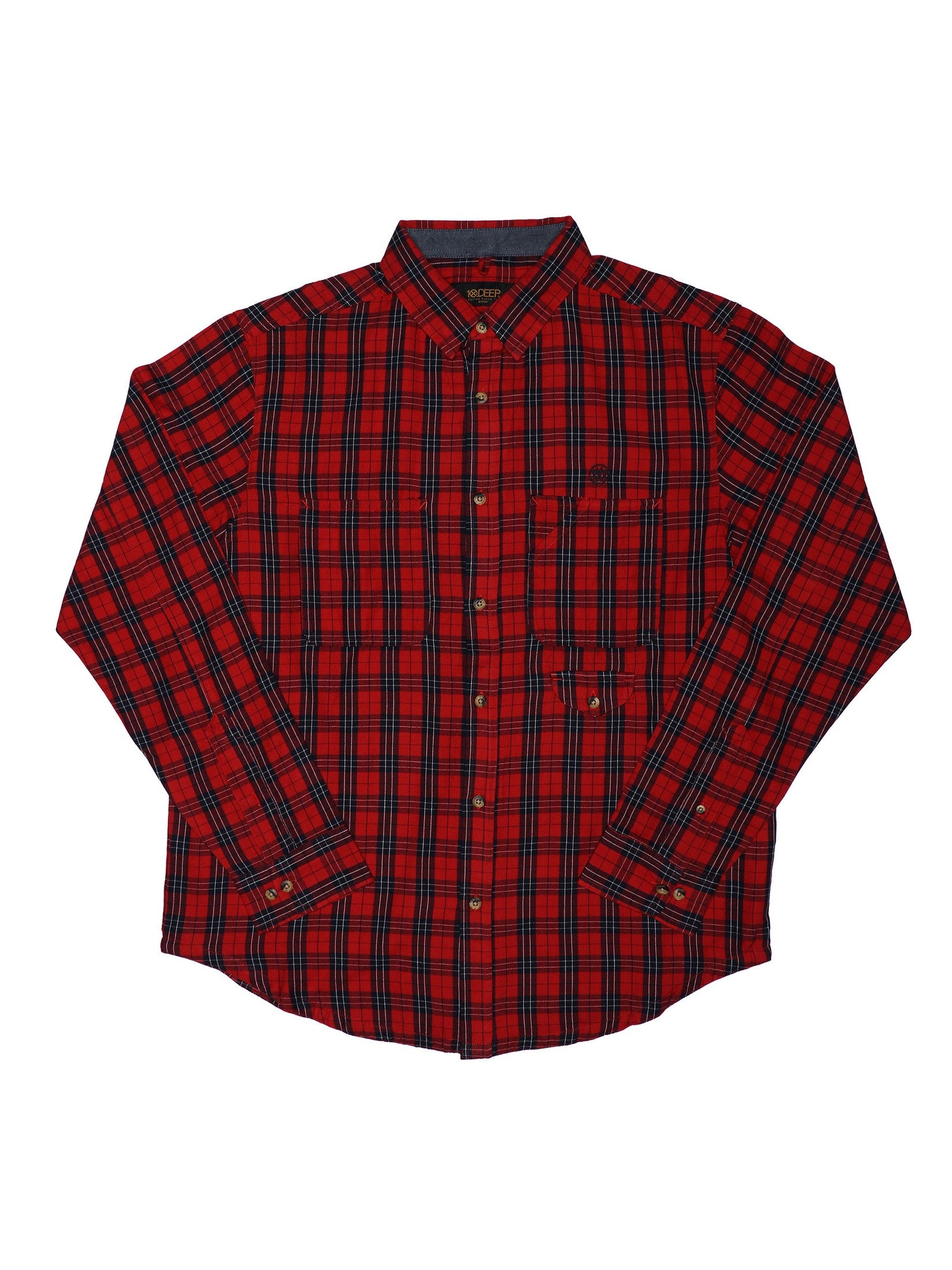 Plaid never died—it just grew teeth. The Mason Button-Down flips the script on your standard flannel with layered pocket detailing and a cut built for motion, not the mannequin. Rich red-and-black tartan hits that sweet spot between “punk show in the alley” and “front porch chessboard at dusk.” Finished with tonal embroidery and dual front pockets for whatever you’re stashing.