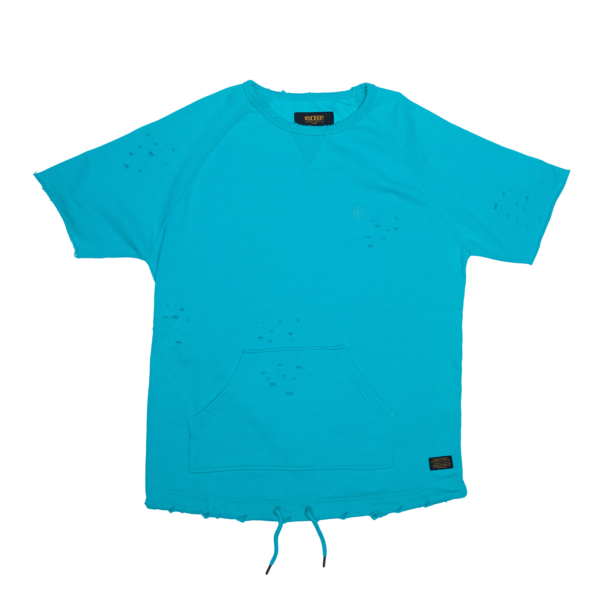 The Spicoli Crew is a relaxed, vintage-inspired pullover that channels laid-back California vibes with a modern streetwear edge. Crafted from 100% cotton, it features subtle all-over distressing for a worn-in look, complemented by raglan short sleeves and a kangaroo pocket. A drawstring hem adds a functional detail, allowing for adjustable styling.
