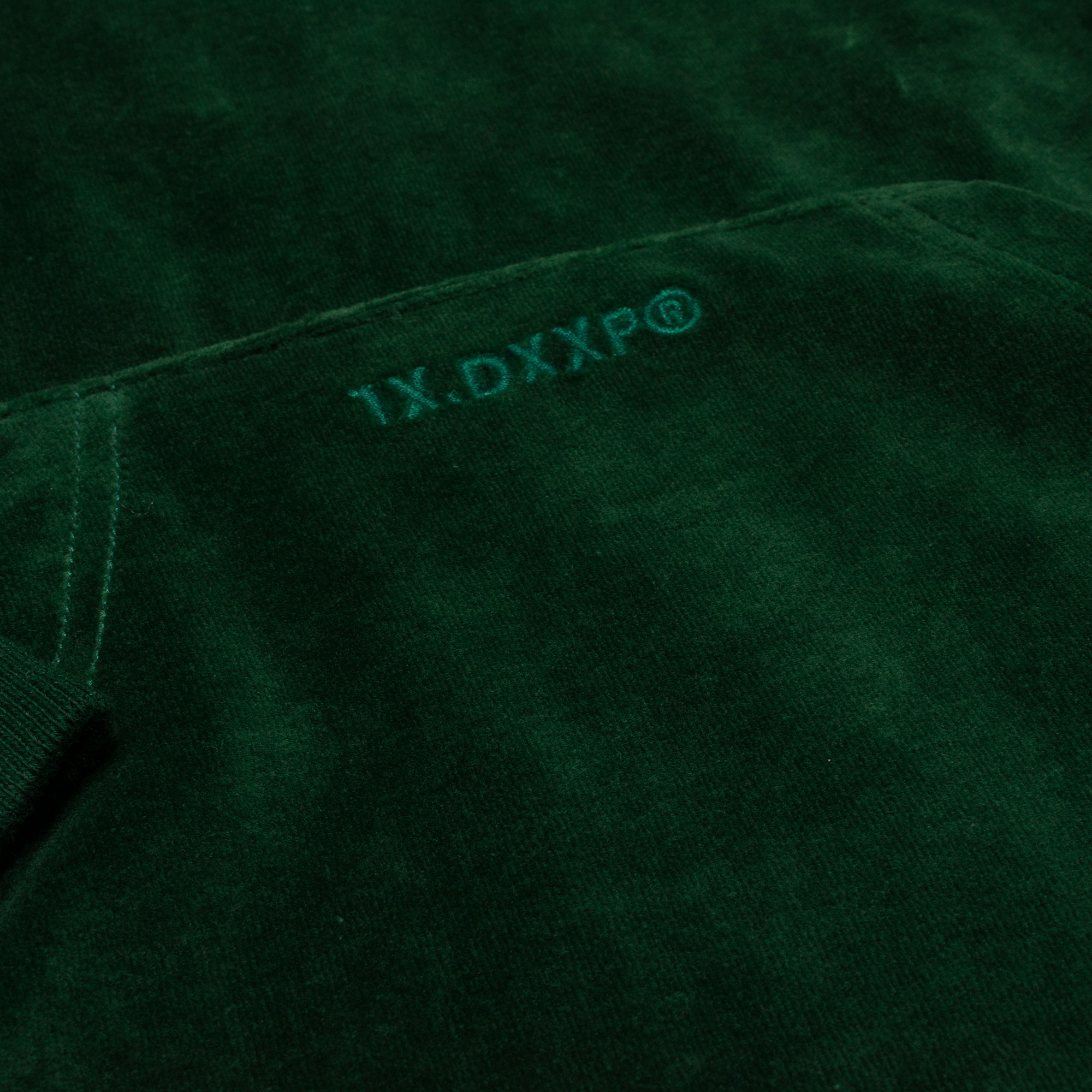 Lush meets laid-back in this luxe velour hoodie, built to shine when the light hits right. The Velour Open Bottom Hoody brings vintage sportswear energy with a heavyweight velour body, tonal embroidered 1X.DXXP® logo at the pouch, and cinchable hem for shape control. Kangaroo pocket up front, circle patch hit on the back. Plush and polished, all at once.